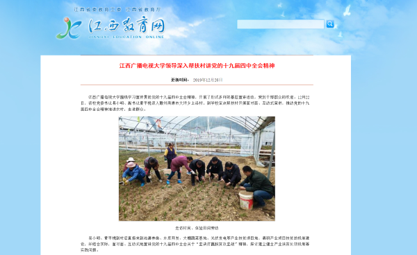 近日,江西教育网、中国江西网等省内主流媒体同时刊登我校党委书记易小明深入定点帮扶村,“面对面、互动式”宣讲党的十九届四中全会精神。