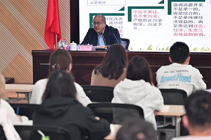 在“加强突出环境问题整治,守护好青山绿水碧海蓝天”这一部分,他紧密结合海南生态环境保护的生动实践,运用详实的数据和鲜活的案例,系统阐述了习近平生态文明思想的核心要义与实践伟力。最后,围绕高质量建设国家生态文明试验区,确保生态环境质量保持全国一流的目标,他鼓励师生积极投身生态文明建设。