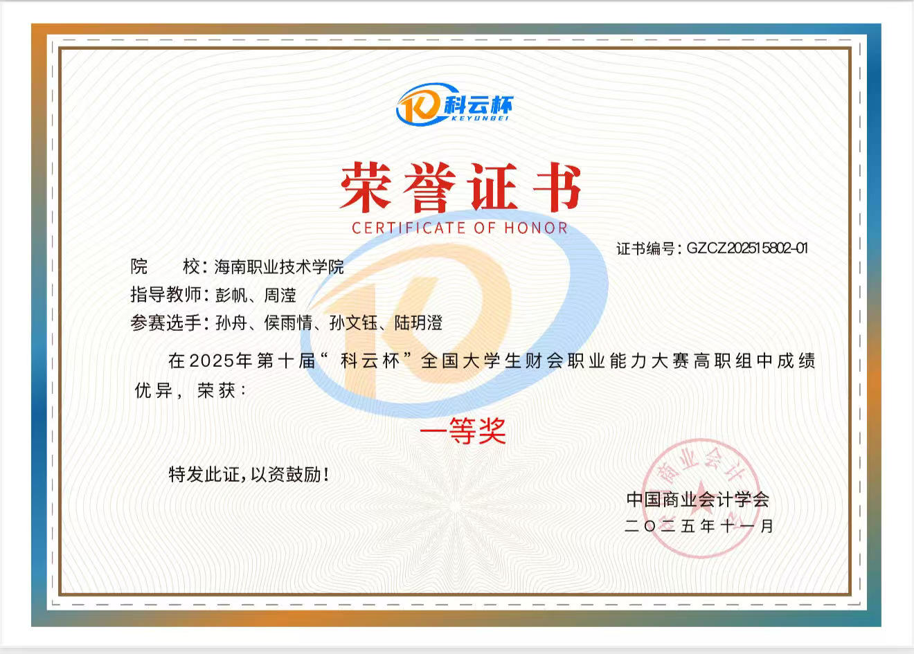 海职院学子勇夺“科云杯”全国大赛高职组一等奖