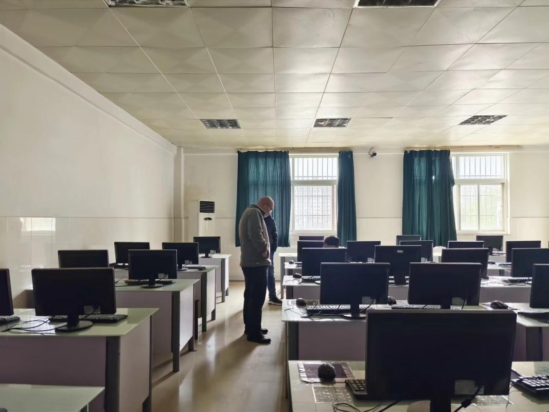而后彭明带队对校园网网络、多媒体设备、教学终端等各种教学设施设备、实验设备及视频监控设备进行了检查。
