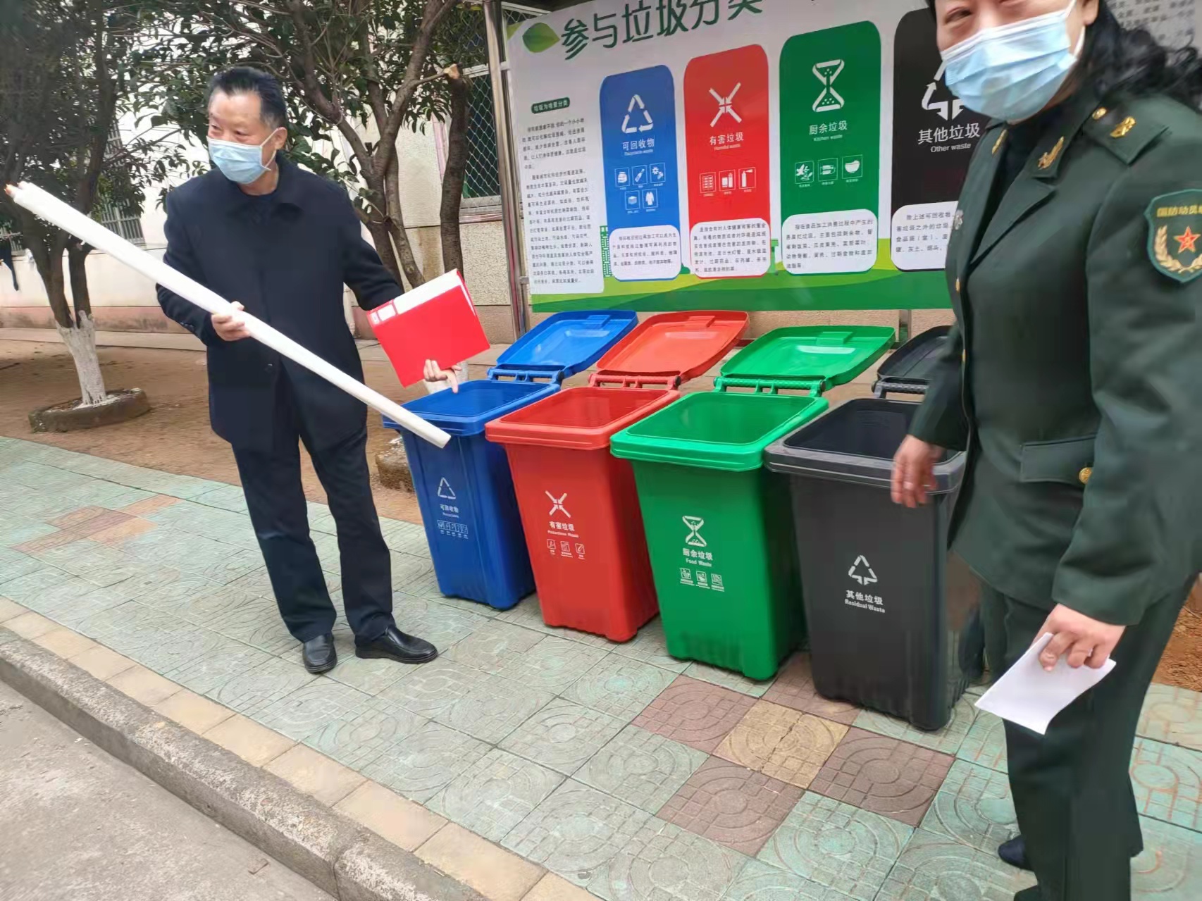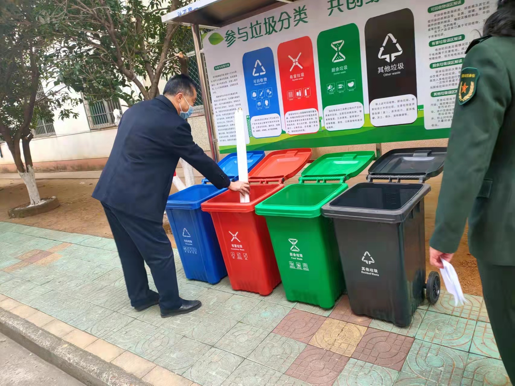 为深入贯彻习近平总书记提出的实现“碳达峰、碳中和”目标,践行习近平生态文明思想,牢固树立创新、协调、绿色、开放、共享创新发展理念,引导全校师生树立节能降碳、绿色消费的生活理念。12月8日校后勤保障中心同人武学院院共同开展“垃圾分类及制止餐饮浪费”宣传活动,主题是:“垃圾分类、开大在行动”,垃圾为啥要分类?你们可能想不到,你一个小小举动,就可以化解垃圾围城、促进资源循环、减少终端处置、改善人居环境,让人们身体更健康,在这方面人武学院物业保洁工人和有些同学做得比较好,每天对学院内生活垃圾进行有效的分类,垃圾分四类:“可回收垃圾、有害垃圾、厨余垃圾、其他垃圾”。此次活动目的是进一步引导全校师生树立垃圾分类的意识,养成垃圾分类的好习惯,让垃圾分类成为校园新时尚,让我们的校园更加干净、舒适、美丽。