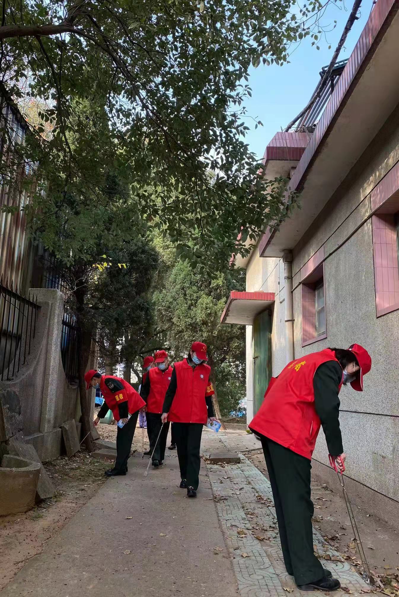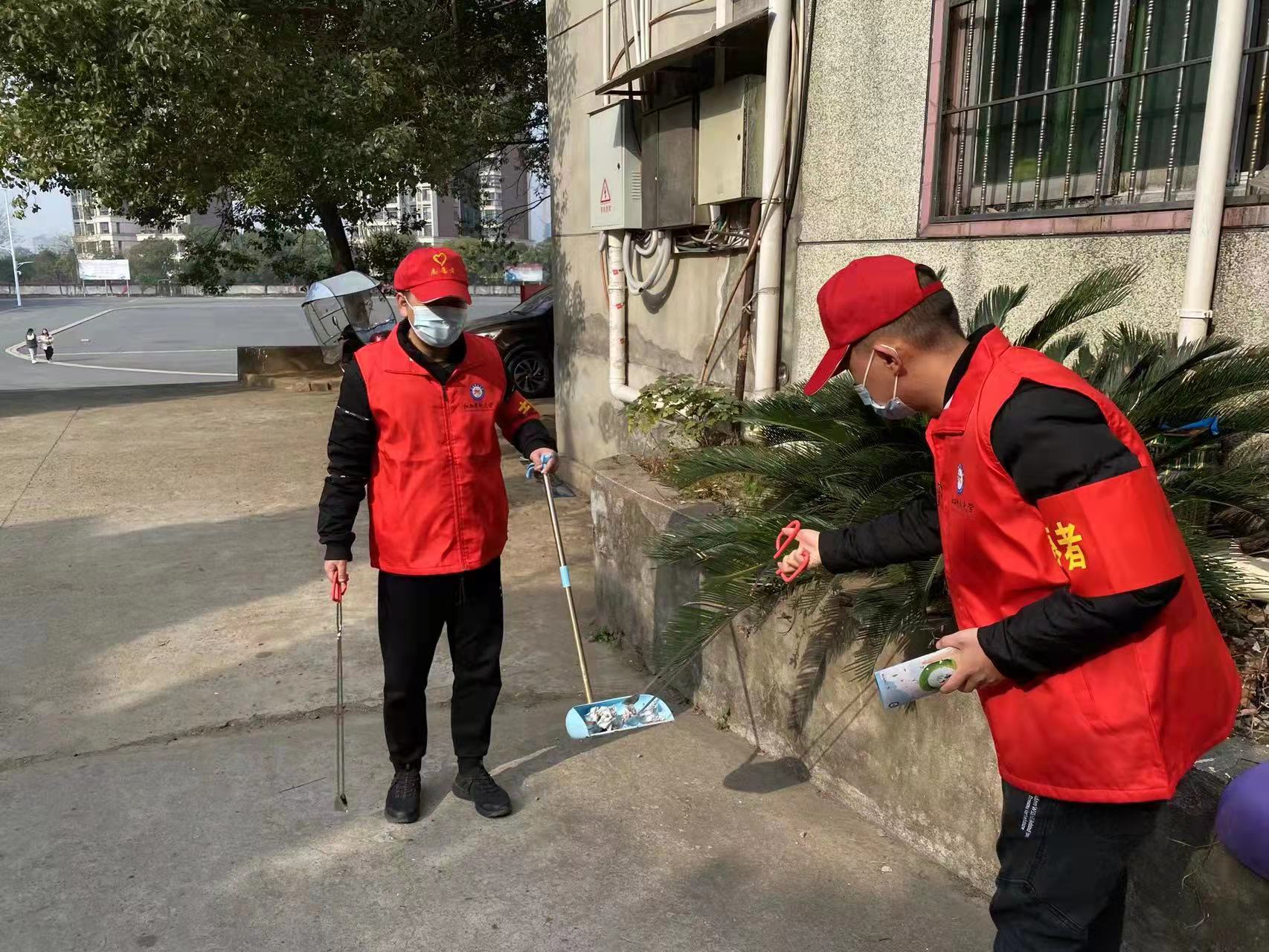 四、志愿者在校园内捡拾垃圾