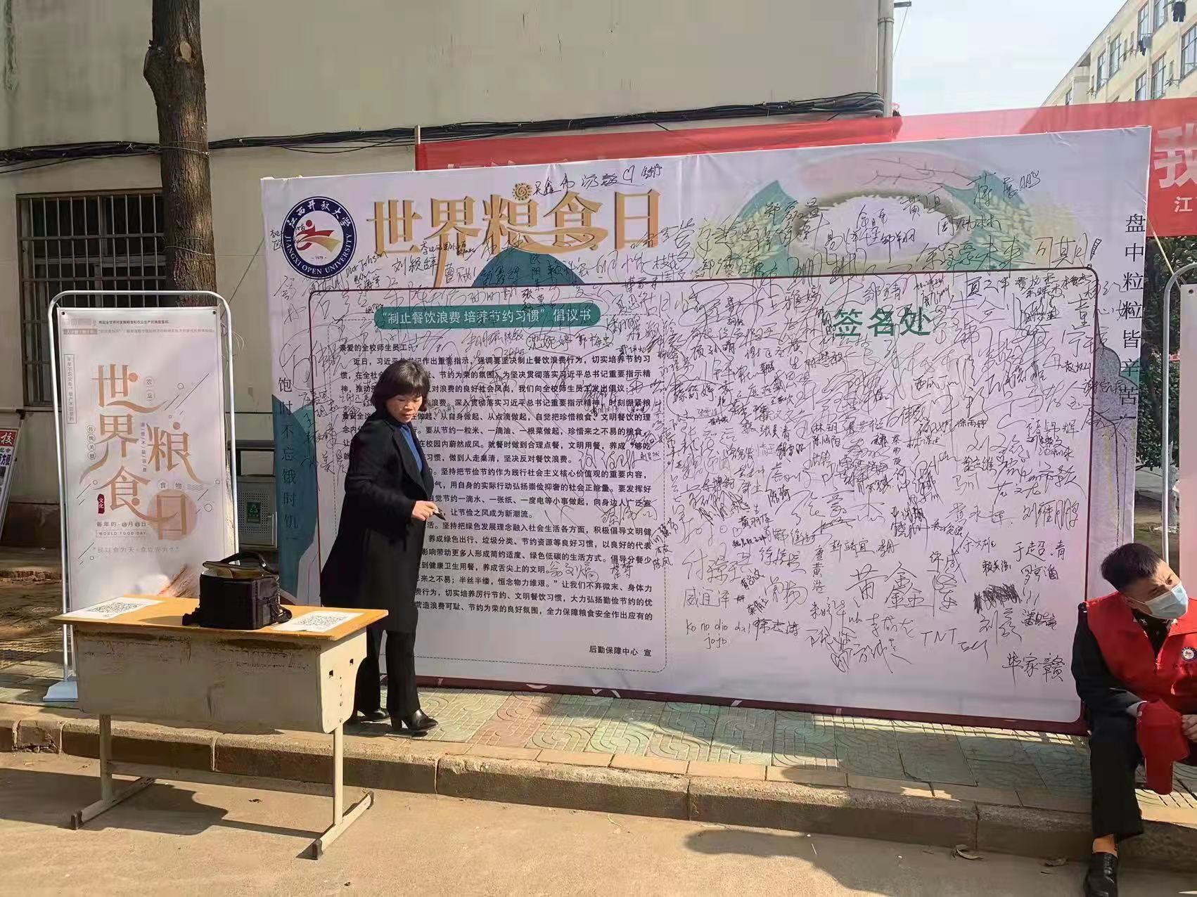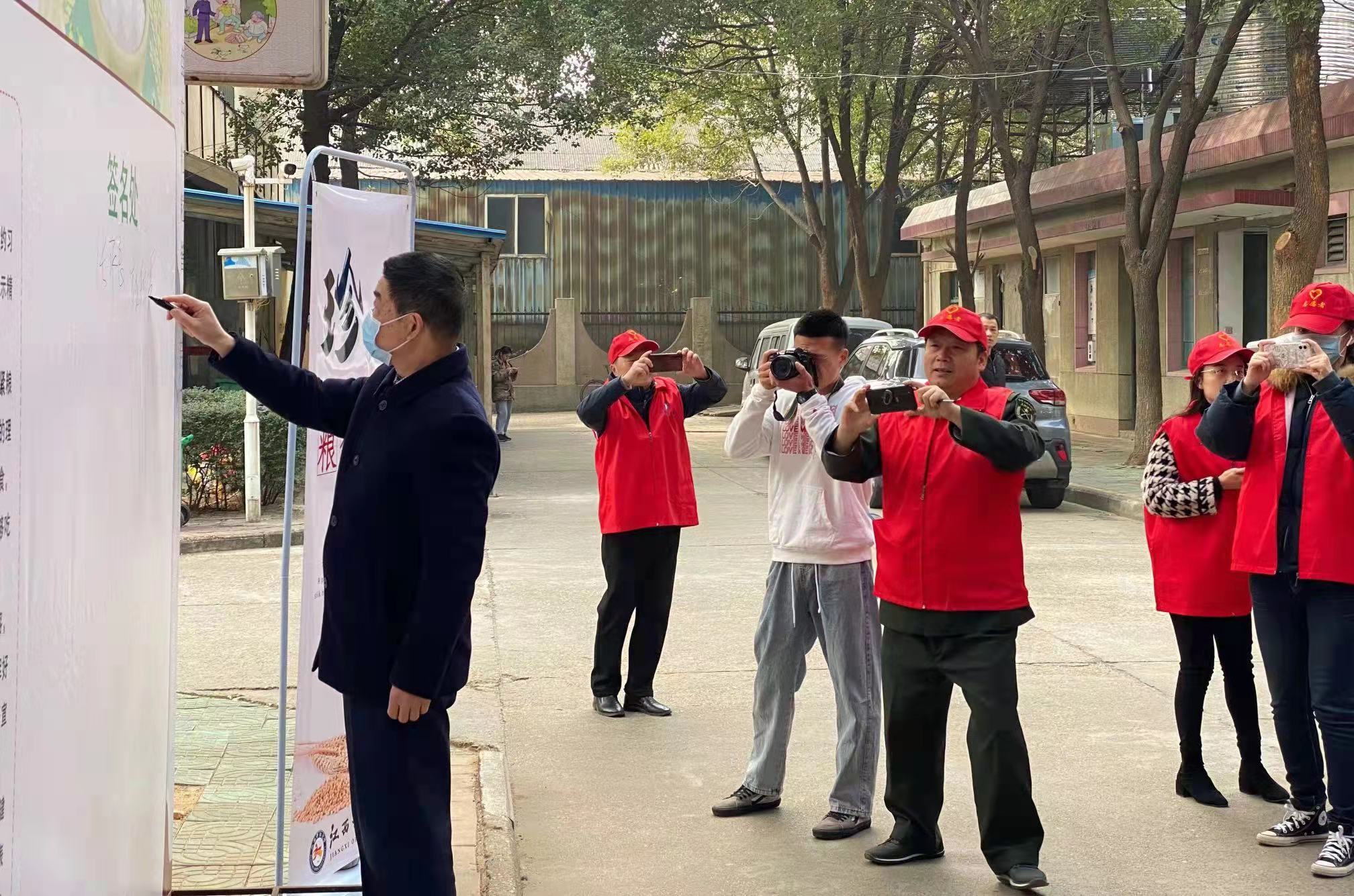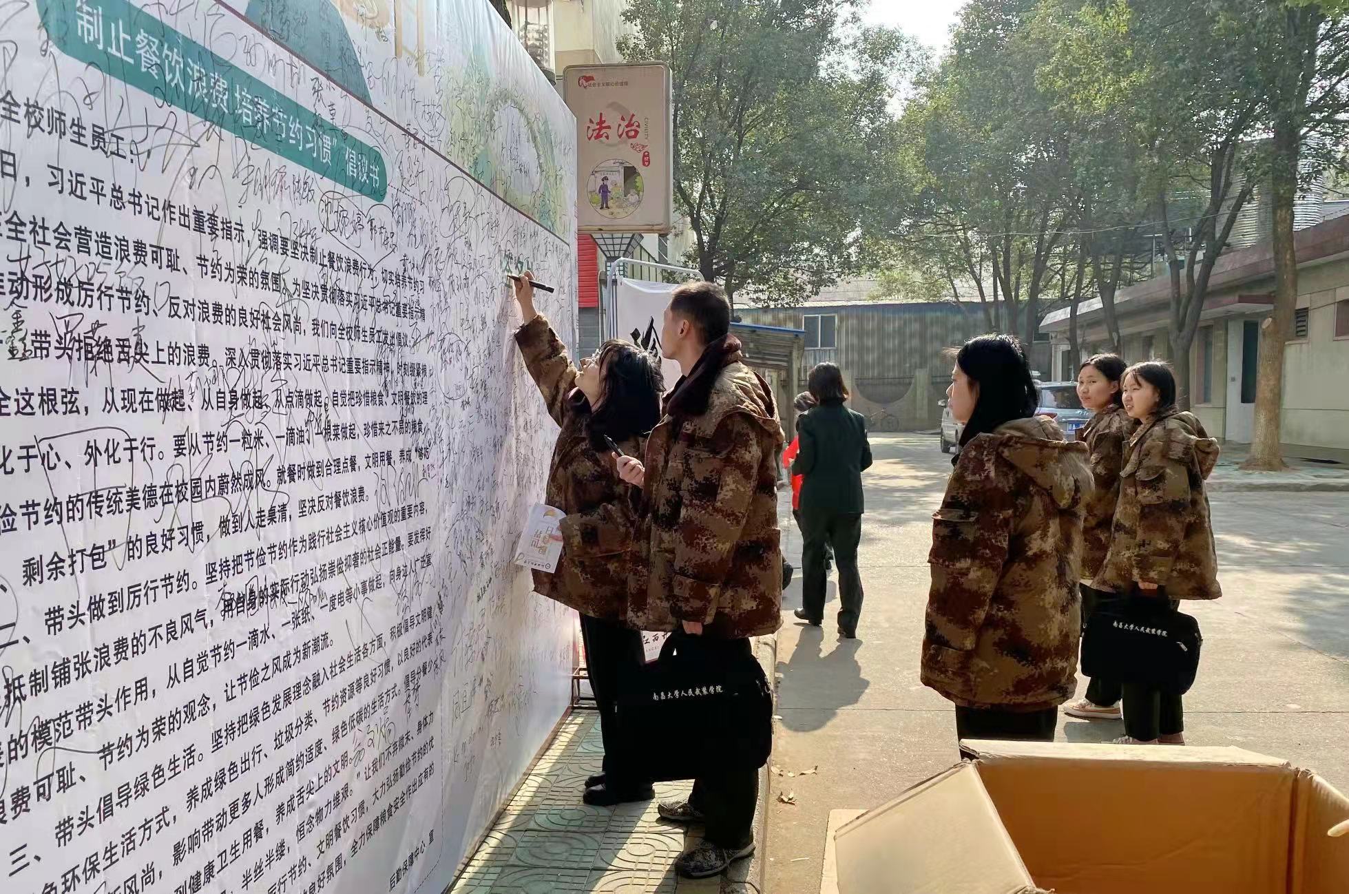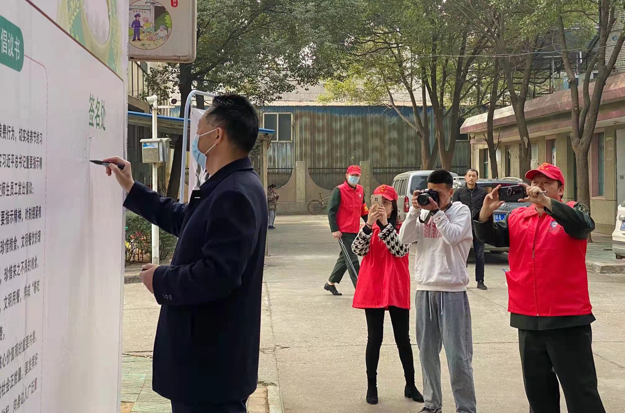 五、领导干部带头在“制止餐饮浪费”倡议签名墙上签名